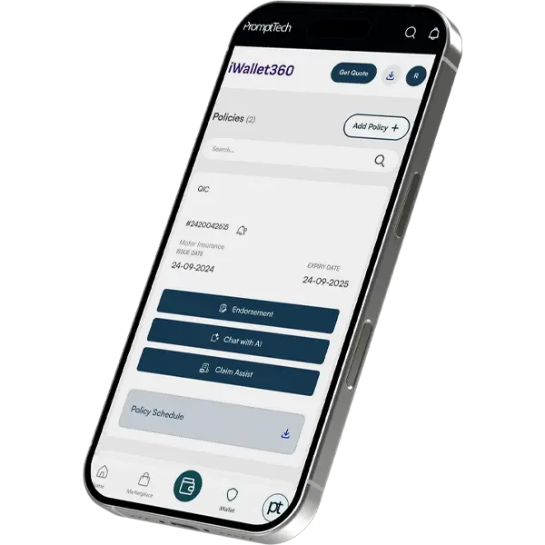 With iWallet360, manage insurance policies, claims, and renewals without leaving the PromptTech Connect interface.